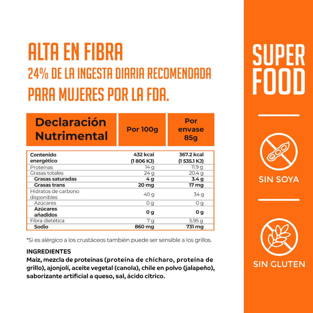 Botana a base de proteína de grillo.